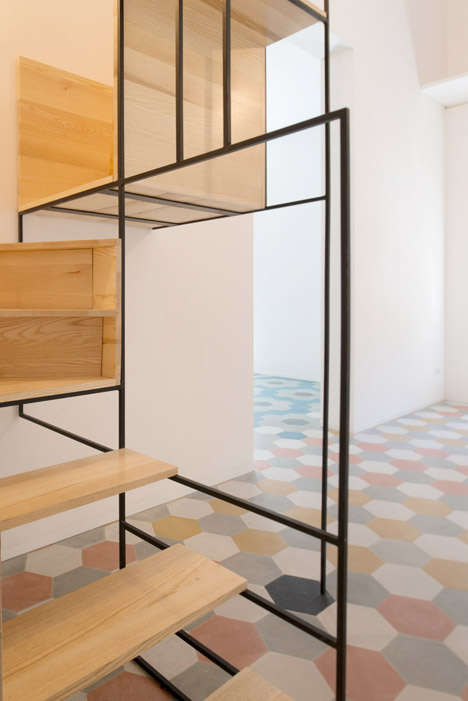 há escadas e escada. umas servem apenas para subir e descer, outras são autências esculturas. estas são exactamente isso. uma escultura composta de caixas e plataformas de madeira, suportada por uma estrutura de metal que se ergue no centro de uma residência siciliana, poe entre pisos cobertos por azulejos coloridos e de padrões diferentes até chegar a um terraço com vista magnífica para o mar tirreno.