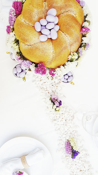 Coloquei nas peças flores e no prato de cada um. A ideia é que fizessem parte da nossa Páscoa, mas a ideia é escrever a data no verso, os miúdos digo eu, e quando isto tudo acabar, cada uma daquelas peças irá para uma das casas onde temos família: avós, tios, nonni, zii, padrinhos… de modo a que nunca nos esqueçamos do que passamos e das saudades que tivémos.