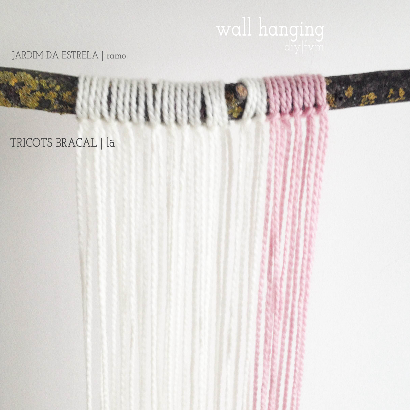 basta começar pelas pontas, primeiro decidir o comprimento e deixar os fios de lã mais compridos, fios duplos, dar a volta ao ramo e enfiar os de frente na argola que vem por trás. deixar passar, apertar e deixar cair. vai-se compondo. acho que as pontas são o mais importante, dá-lhe limites e compõe-se melhor. a partir daí é completar a coisa… eu demorei 3 dias, não inteiros e não seguidos, foram 3 momentos que eu preenchi com isto, foi incrivelmente zen…