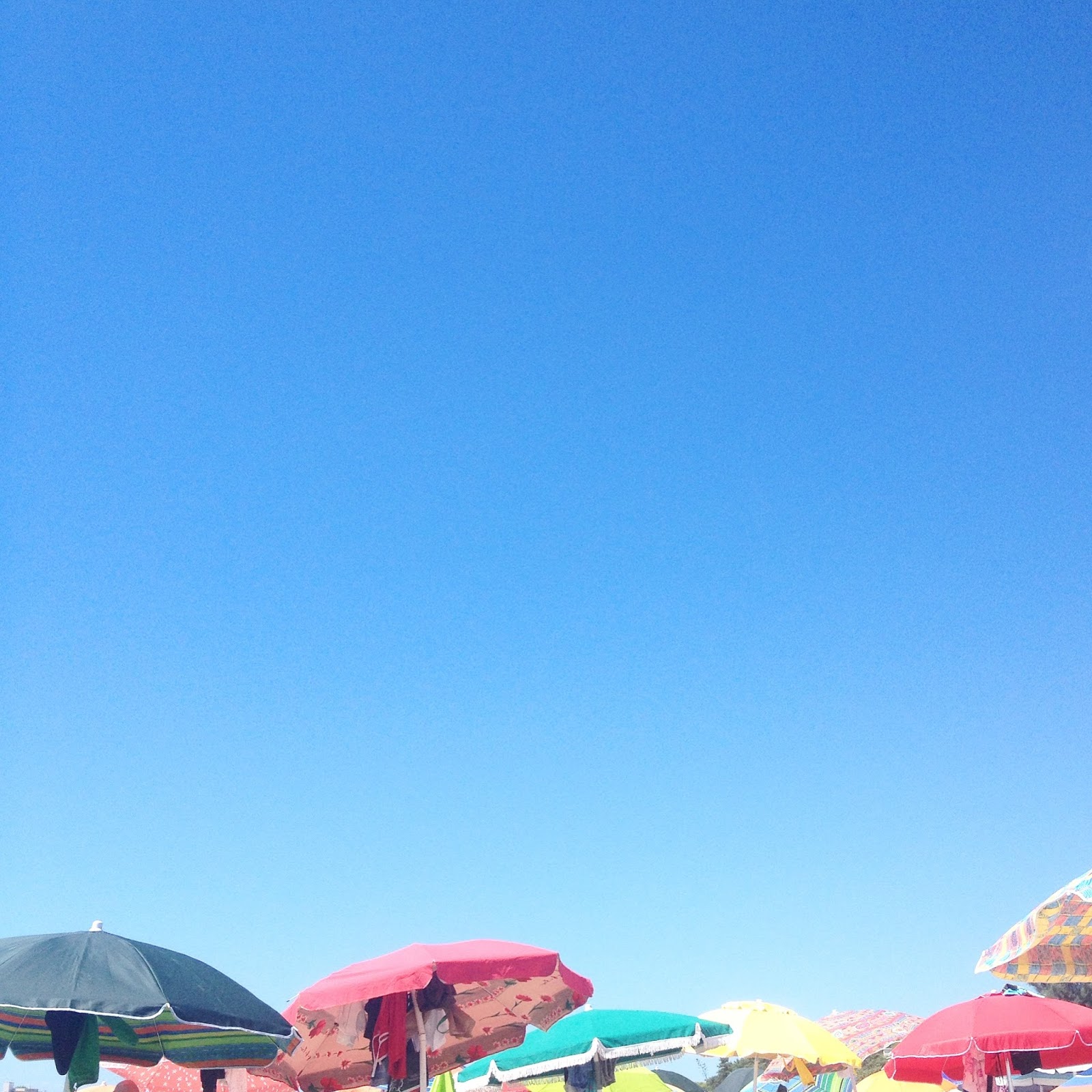 ao segundo dia no paraíso não conseguia parar de tirar fotografias, mas no fundo tirava ao acaso deixando mil e uma ficarem queimadas do sol e mais estranhas que nunca, guardei estas desse dia, tons de azul e verde que fizeram parte dos rituais de casa. o vestir e esperar pelo resto da trupe. chegar e procurar um lugar ao sol… processo de alguma dificuldade pois dependendo da praia do dia, e das horas o lençol de chapéus era maior ou menor. chuveiro para tirar os kilos de sal no jardim e tanto descanso. que bom que é ter apenas uma tarefa para fazer… ir para a praia. o resto… isso faz-se.