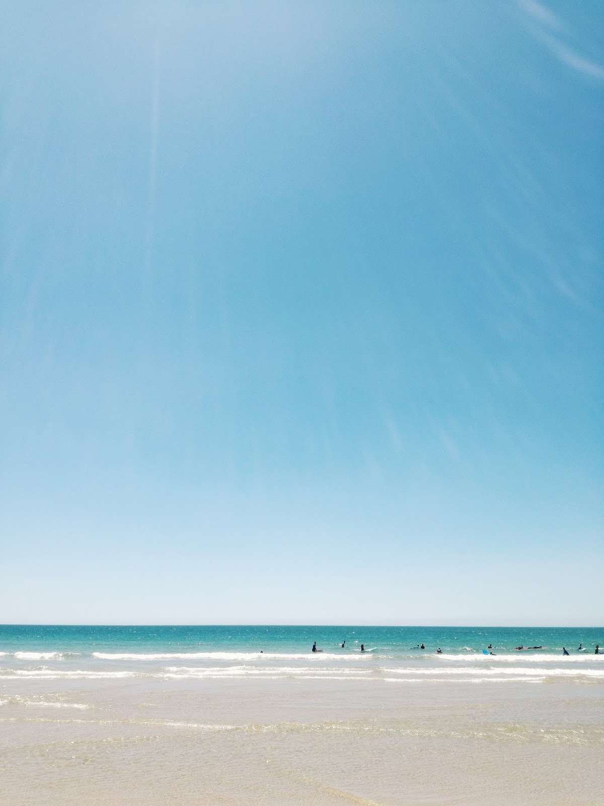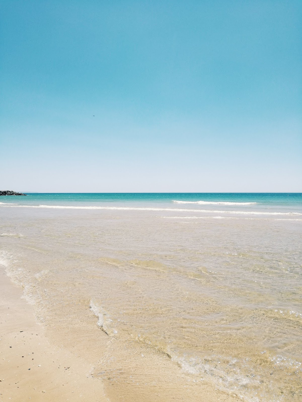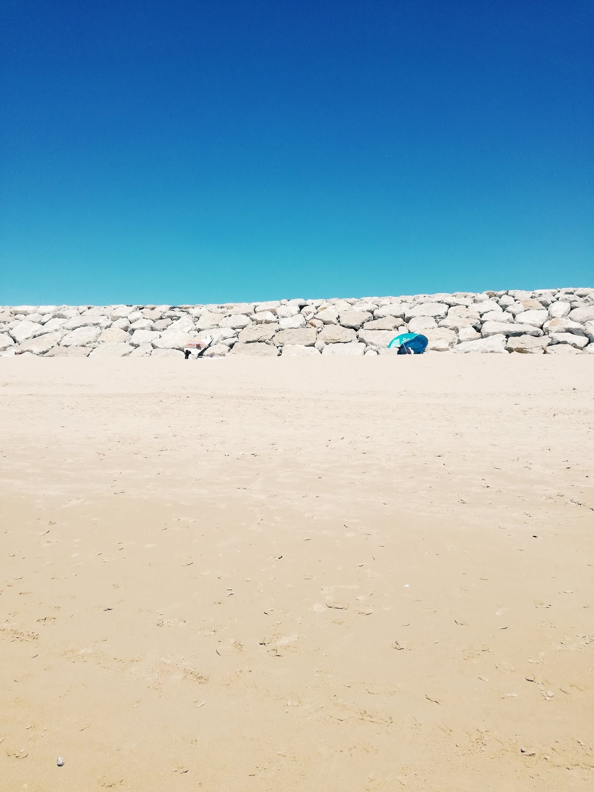 a nossa praia fica do outro lado da ponte, não vamos para a linha, não gosto muito da linha, do trânsito nem do modo como os carros são abandonados como querem e bem lhes apetece. não gosto particularmente da areia e a água, não digo que toda, nunca me parece completamente limpa. a linha tem a vantagem de ter mais serviços talvez e menos a preço de ouro, mas raramente gasto dinheiro na praia e levo o que precisamos para ir petiscando. gosto deste espaço vazio, do horizonte largo e de não ter ninguém num raio de 20m… a água é maravilhosa, limpa, transparente, com maré baixa quase o dia todo permitindo que podemos estar todos na água ao mesmo tempo sem medos. eles brincam, ele corre, escavam, criam piscinas e é tudo tão tranquilo… é como se eu recuperasse tempo.