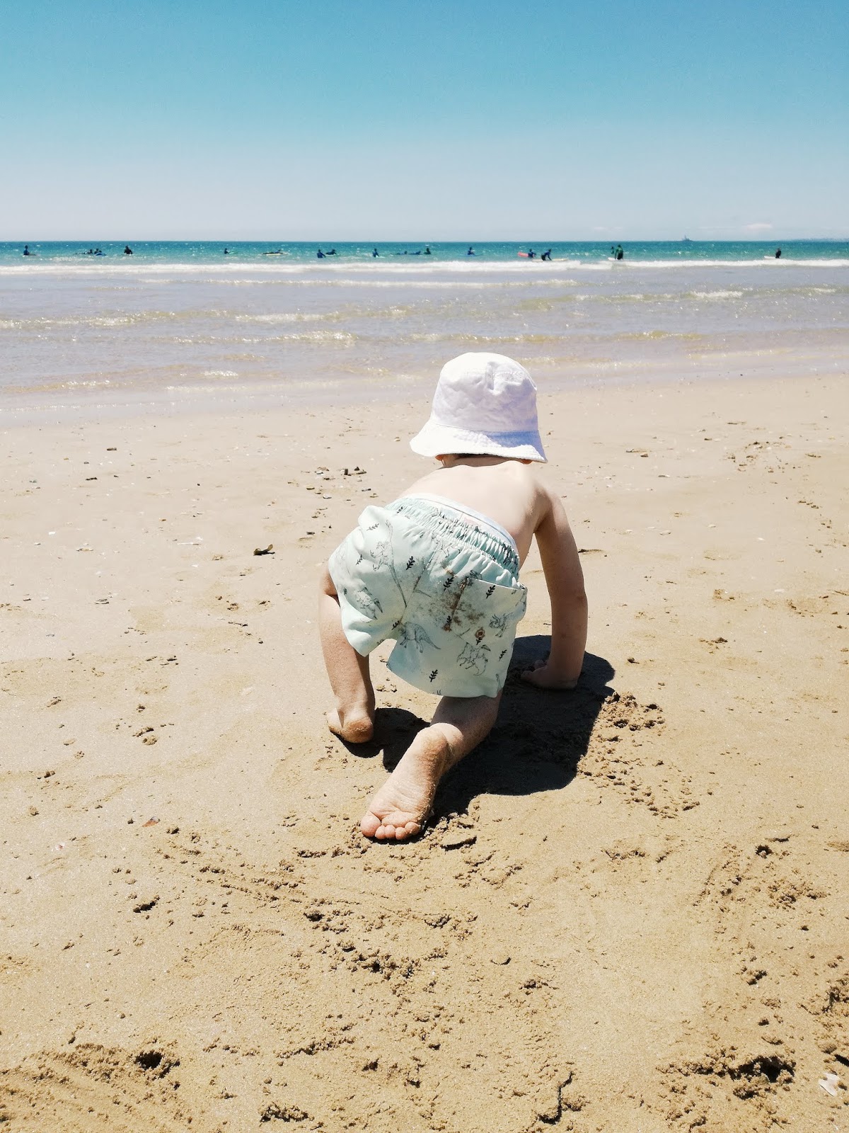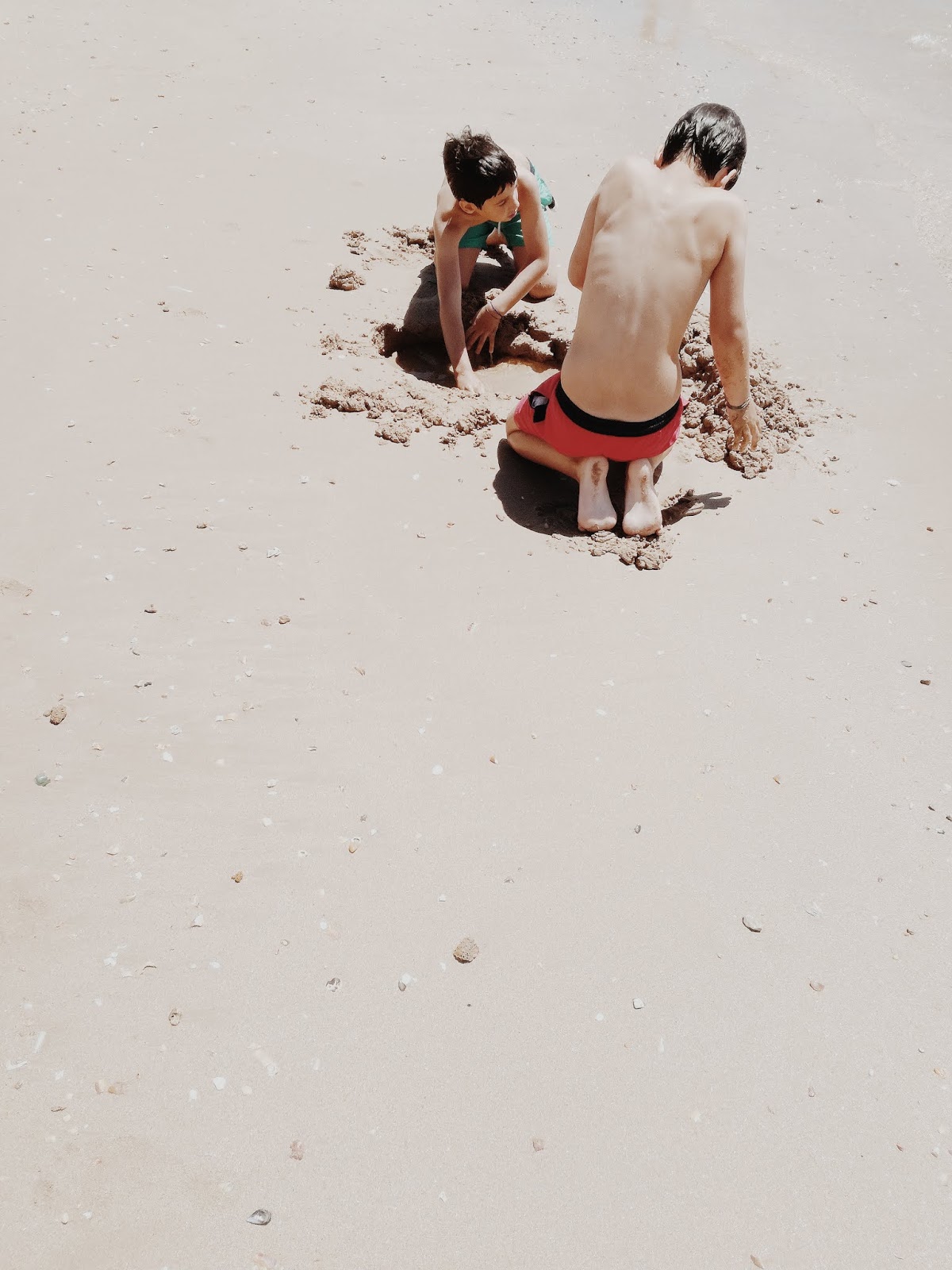 o nosso verão começa logo a seguir aos anos dos manos crescidos e normalmente, apesar deste ano ter chegado mais tarde, começamos logo a meter os pés na água e na areia, nem sempre é fácil porque eu também não entro em água gélida logo logo, mas se eles entram e aguentam quem somos nós para contrariar. aqui somos felizes, já dizia alguém e nós somos mesmo. temos um horário de praia completamente diferente do resto do mundo e gostamos de não ir nem a correr nem sair de fugida. dia de praia a valer é acordar com calma, levar o mínimo possível, sair quando nos apetecer. só se leva o pouco essencial, que voltou a querer dizer com brinquedos… o lanche passa a ser um refeição com peso depois de um almoço super leve em casa e um jantar já pré-feito no dia anterior, normalmente saladas frias no terraço. não há horas nem telejornal que nos impeça de relaxar por completo. o baby V já se adaptou, os manos sabem-no de cor. o pai tem companhia para os longos passeios, a mãe lê enquanto o mini dorme a tal sesta de 2 a 3 horas. quem me dera… mas há muito livro comprado na livraria à espera que eu os leia e crie mais espaço.