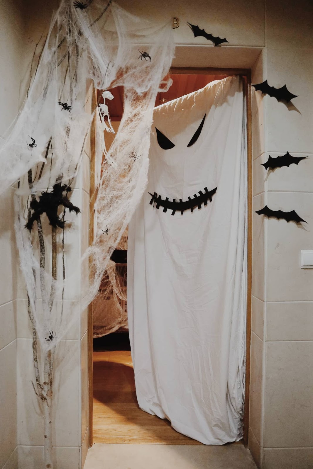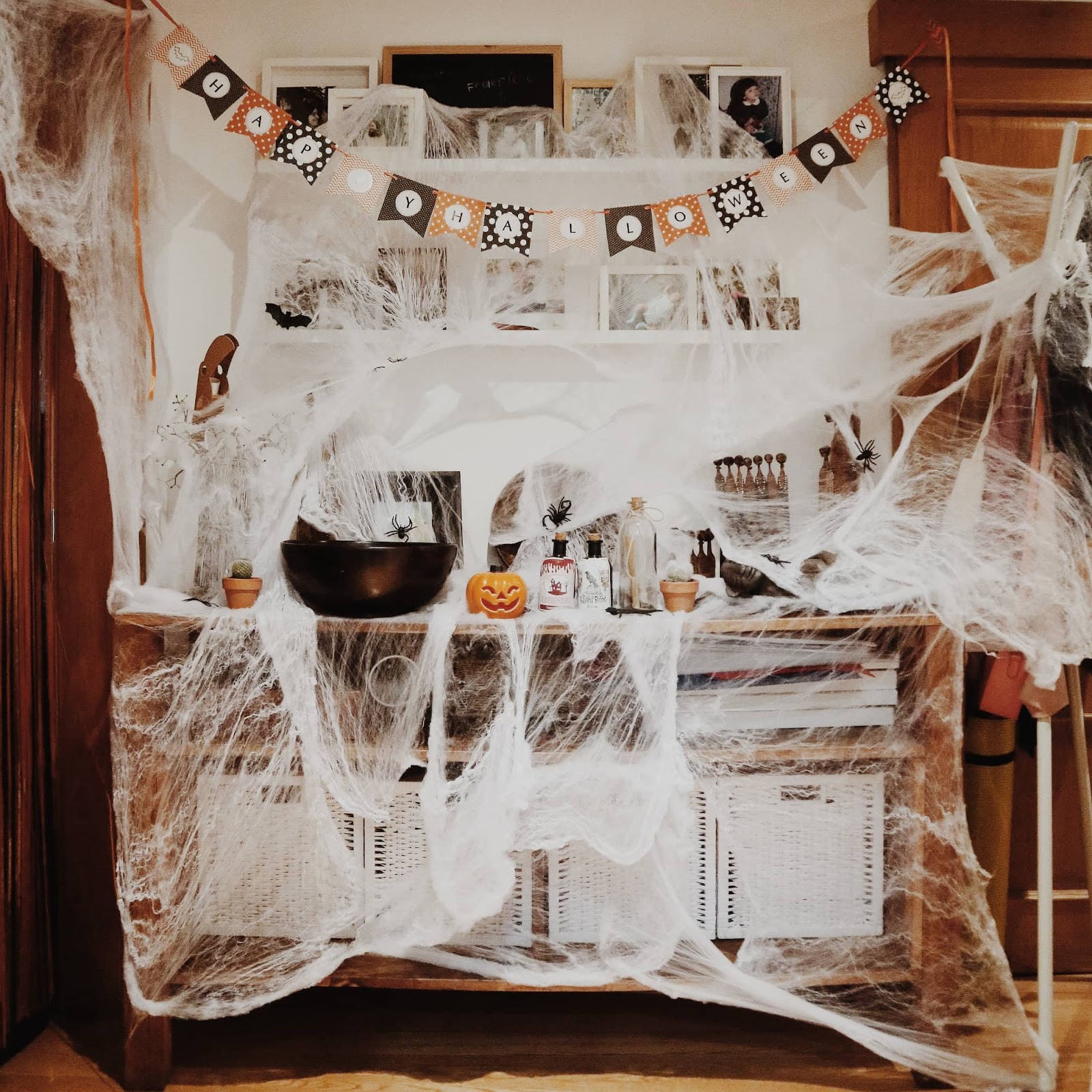 Por cá ninguém a nada é obrigado, mas é tão bom poder dar-lhes esta noite cheia de momentos diferentes. Eu já me habituei a decorar as escadas do prédio e encher o hall de um ambiente de entrada em casa assustadora, desde lençóis, a baús velhos, bichos peludos, alguns feitos à mão, teias de aranha por todo o lado e muita muita dedicação.