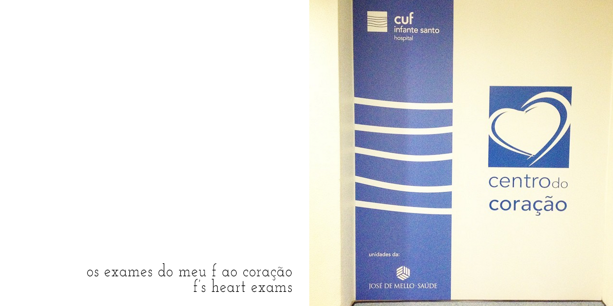 esta semana que começa sempre ás 3feiras começou no centro do coração no hospital da cuf… um susto deu em exames e deu em resultados bons e sem preocupações de maior… uma manhã entre mãe e filho únic que me permitiu lembrar-me de tudo aquilo que quero para eles, para ele, mas o quão bom é este meu pequeno grande F. não foi o único a exercitar o coração, eu voltei ao que no último ano me deu muita força, não só de ego, vontade mas também de acreditar em muito mais do que imaginava. mexer-me faz-me bem e se de facto custa, no fim a sensação de paz é overwhelming.