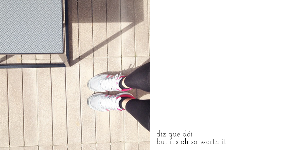 o meu objectivo destes treino sempre foi o mexer-me, aumentar a auto-estima e puxar por mim só mais um bocadinho. impressionante como a seguir a um treino apetece-me fazer tudo, tenho força para qualquer programa, venha ele. a energia parece que aumenta e lá vamos nós num programa a quatro com a mãe em êxtase! gosto desta sensação que temos de achar que podemos conquistar o mundo a seguir a um treino que quase nos matou! e que dores senhores! tantas, mas já não tantas como no início. aquelas dores que me impediam de descer escadas, agora são meras memórias, agora dói-me mais no profundo, demora mais a doer e por vezes sem querer arruinar a sorte, não dói de todo porque vou aumentando a resistência e sei que faço tudo melhor… mas dói durante, isso dói sempre!