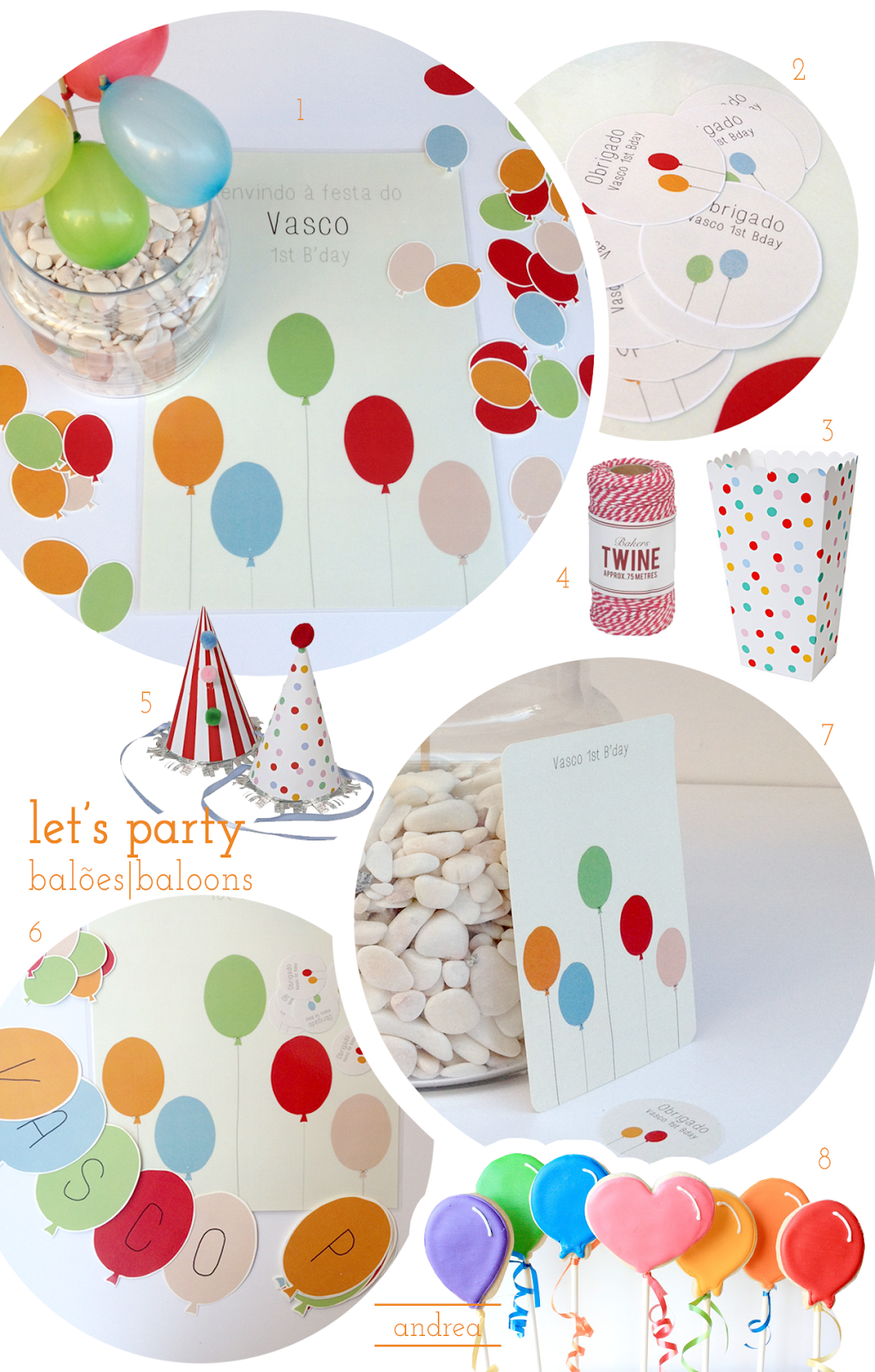 1.poster | 2.etiquetas autocolantes | 3.copo pipocas | 4.baker’s twine | 5.chapéus de festa | 6.bandeirola | 7.convite | 8.bolachinhas (imagem via pinterest, mas a sweetbit faz iguais de certeza!)