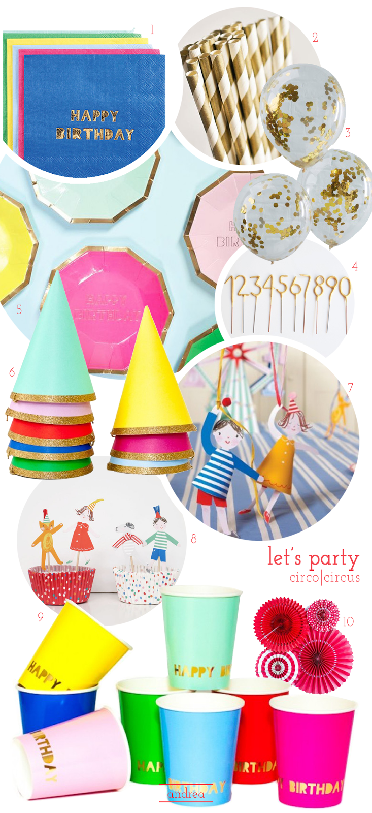 1.guardanapos | 2.palhinhas | 3.balões | 4.velas | 5.pratos | 6.chapéus | 7.figuras para balões | 8.cupcake toppers | 9.copos | 10.leques