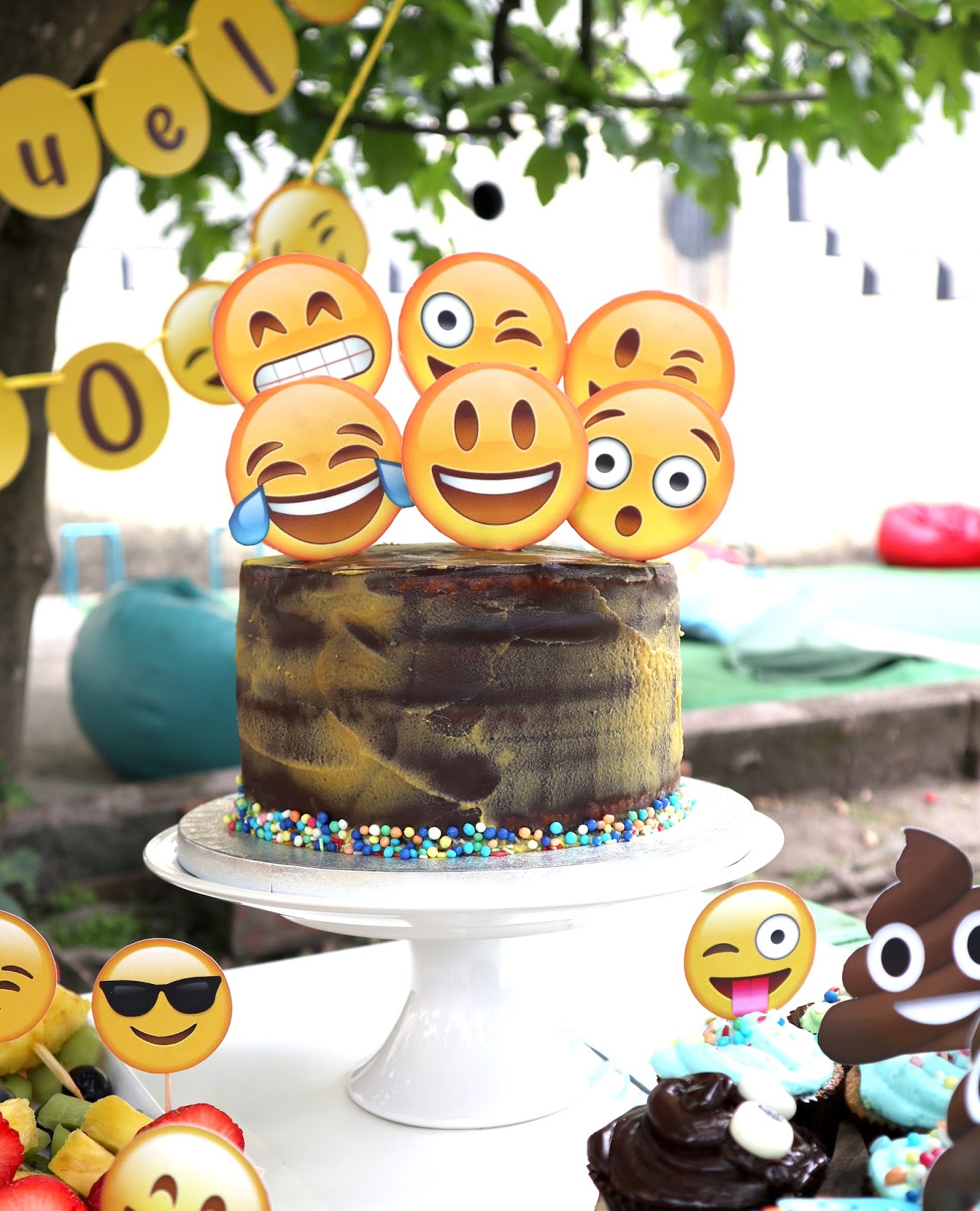 EMOJIS! Na verdade o tema foi escolhido mesmo à última, a Inês não sabia ao certo o que seria melhor para rapazes e raparigas de 10 anos, idade em que já não querem grandes merchandizings de bonecos, mas idade terrível para as primeiras separações entre boys and girls. Achei que a ideia seria perfeita! Um tema, que em quase tudo é alegre, pela cor, pelas caretas, pelas emoções, e por poderem durante um dia falarem de cócó sem ninguém a aborrecer-se… “let them be kids”.