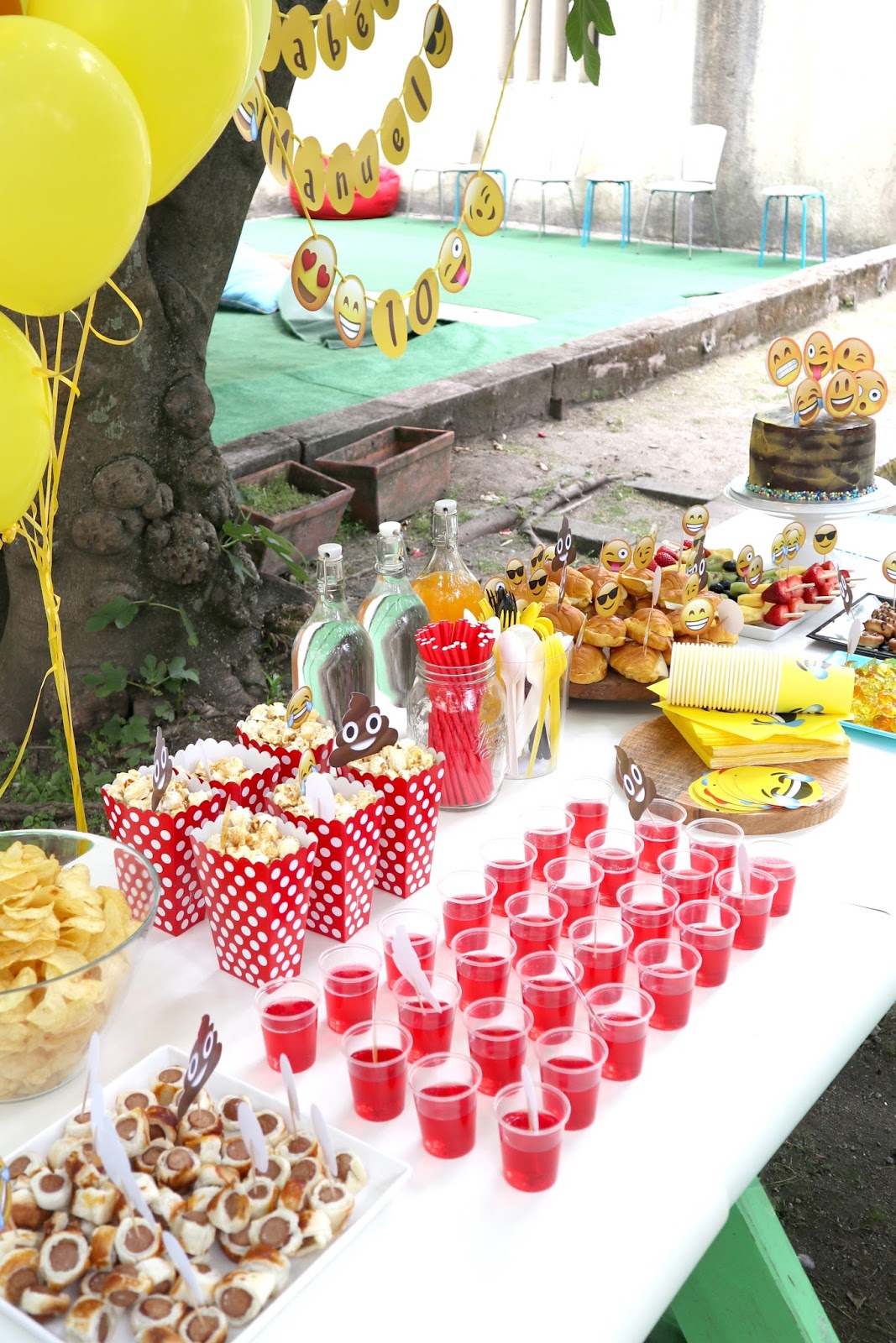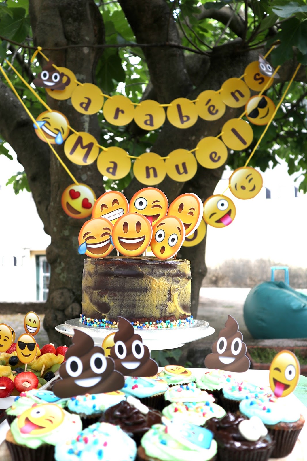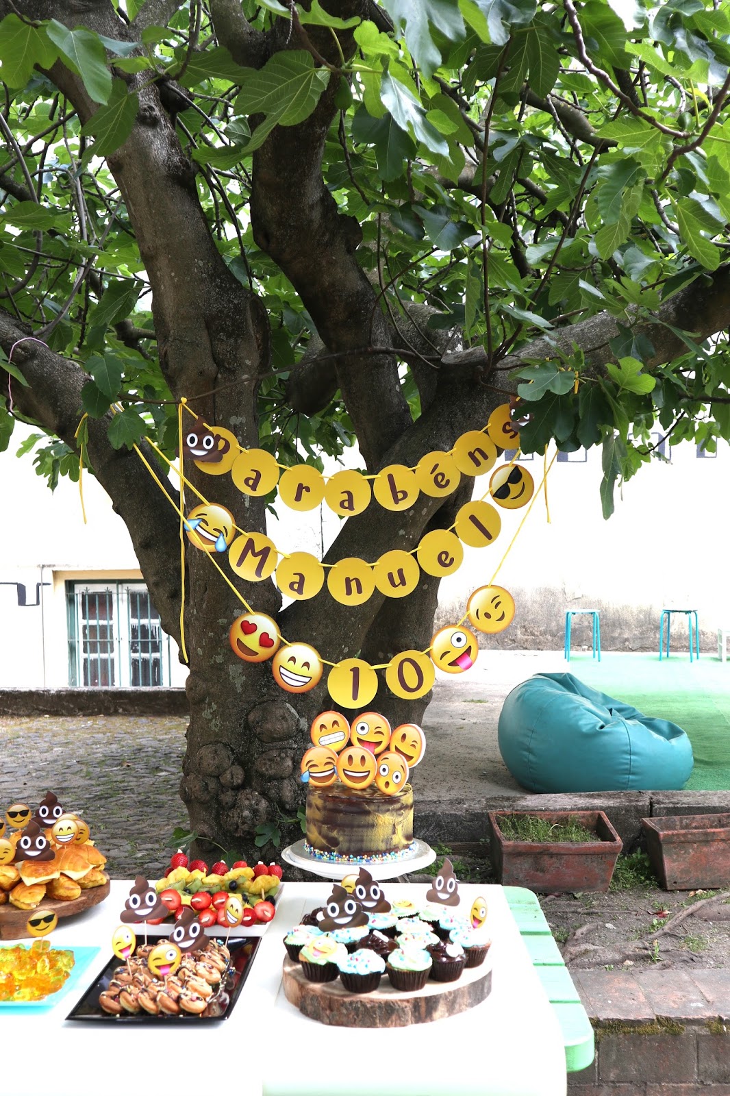 EMOJIS! Na verdade o tema foi escolhido mesmo à última, a Inês não sabia ao certo o que seria melhor para rapazes e raparigas de 10 anos, idade em que já não querem grandes merchandizings de bonecos, mas idade terrível para as primeiras separações entre boys and girls. Achei que a ideia seria perfeita! Um tema, que em quase tudo é alegre, pela cor, pelas caretas, pelas emoções, e por poderem durante um dia falarem de cócó sem ninguém a aborrecer-se… “let them be kids”.