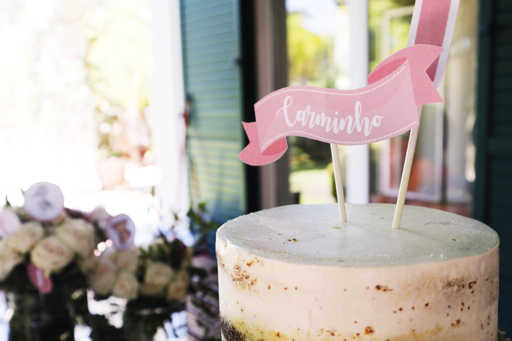 Para este momento escolhi a Sweet Cakes que me trouxe o bolo “naked” branco impecável, de cenoura, delicioso by the way! No qual meti o meu cunho personalizado… decorá-lo com flores, que usei na festa toda, para lhe conferirem um mood igual a todo o espaço, mas mais delicado.