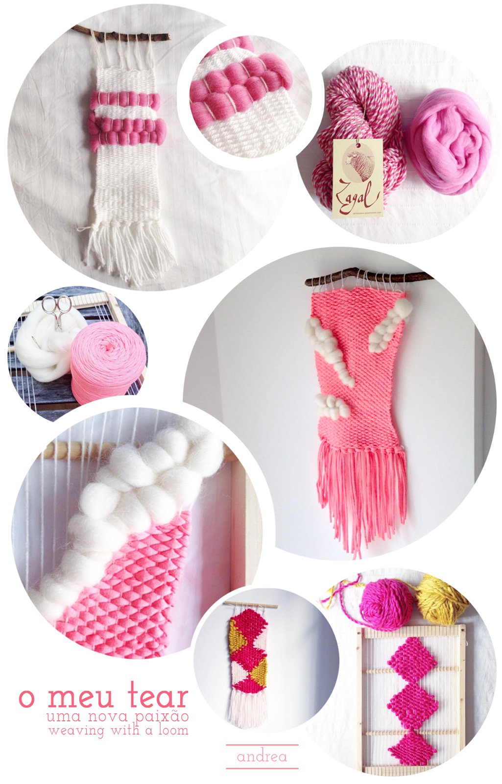 comprei o meu tear, de tamanho médio pouco maior de um A3, o suficiente para que a peça tenha uma dimensão amorosa, mas que também possa servir de decoração e não enorme que ocupe metade da casa enquanto a estiver a produzir, pormenor importante para quem não tem espaço nem para mais um alfinete. quando o encomendei não fazia sequer ideia de como começar nem sequer como montar um tear. chegou em peças, num saquinho próprio, cheio de carinho da WEAVING, da querida Rita que tanto me aturou quando eu quis pedir um tear e não fazia ideia do que estava a pedir… ouviu-me, aturou-me e lá me orientou. chamei as peças com nomes que não lembra a ninguém e ela bem me ouviu… mesmo assim, quando chegou amei. montei-o… e olhei bem, vi, virei, toquei… e nada. ficou ali uns três dias… só depois comprei as lãs, procurei e encontrei, mas não tinha ainda coragem para começar.
