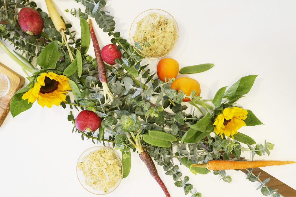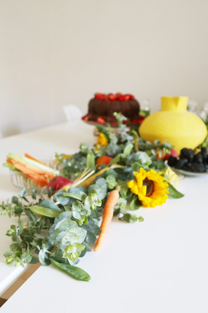 A Horta do Bairro ajudou nos produtos frescos, frutas, verduras que não só são deliciosos como lindos e que completaram muito bem a decoração!