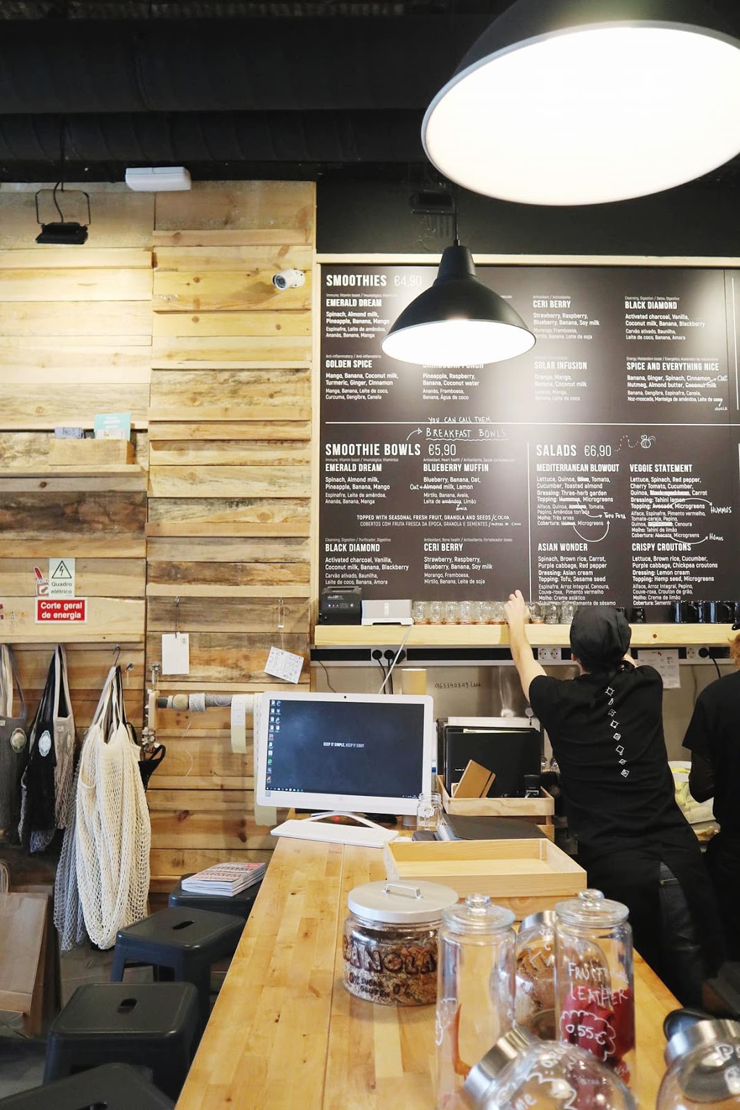 O menu é longo como uma parede e tem tanta coisa que foi preciso pedir um pouco de tudo para não perder nada e poder decidir para uma próxima vez. Cada smoothie, smoothie bowl, tosta, sandes (ou panini…) bebidas e saladas têm só 17 ingredientes e eu fico sempre aflita porque conheço 3, não gosto de 5 e o resto por vezes é-me chinês.