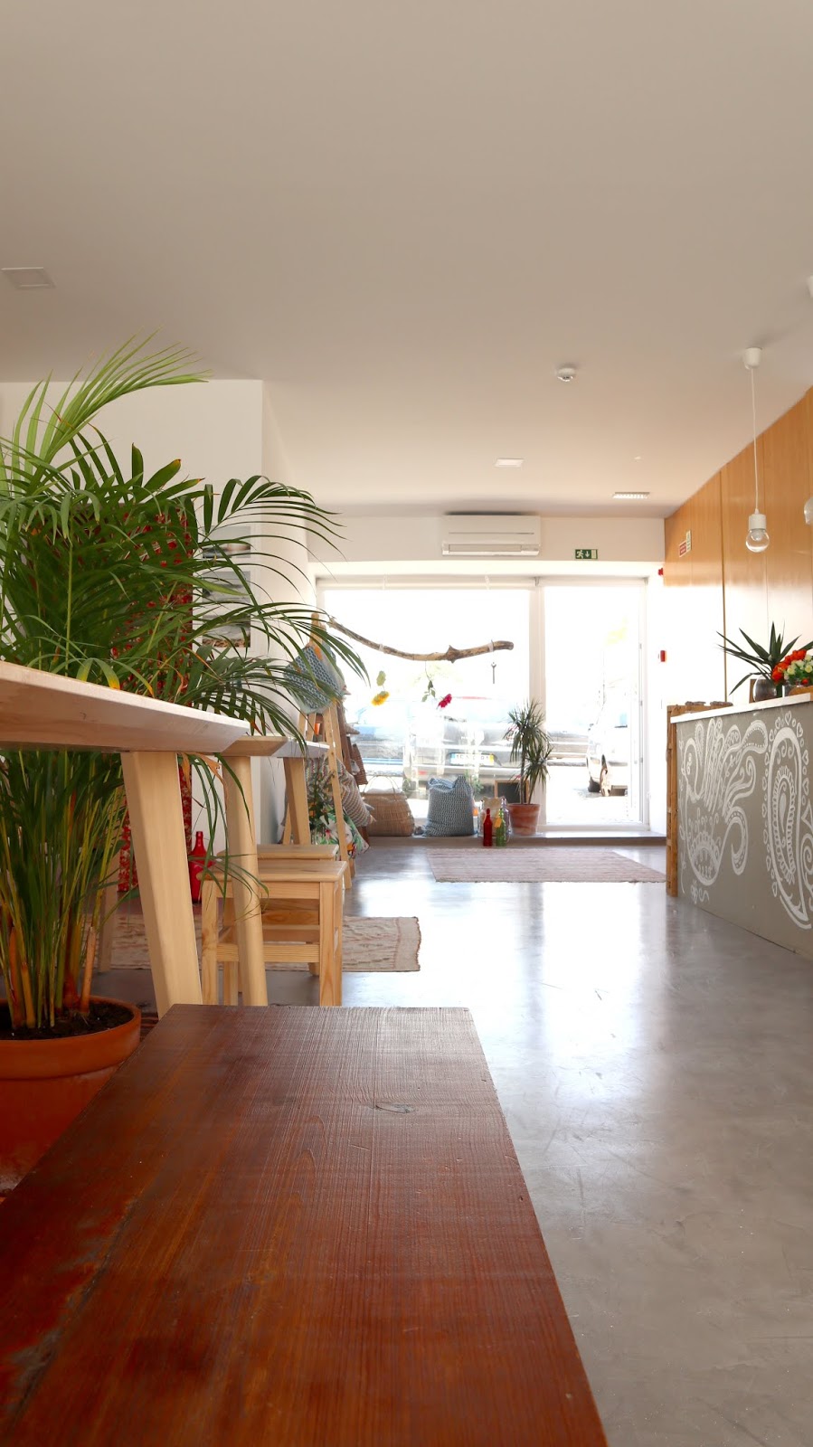 Para além de produtos desde calçado, biquinis, peças decorativas, adereços para a praia e as mega pranchas de surf, que para mim que sabe pouco do assunto são só por si uma peça de design, há um terraço traseiro onde eu gostava de viver. É aqui que eu prometi reservar um degrau para almoçar, para vir tomar um copo ao final do dia e onde sei que estão para acontecer eventos e workshops que a C. está a organizar com imensa vontade, há planos no ar e eu quero lá estar!!