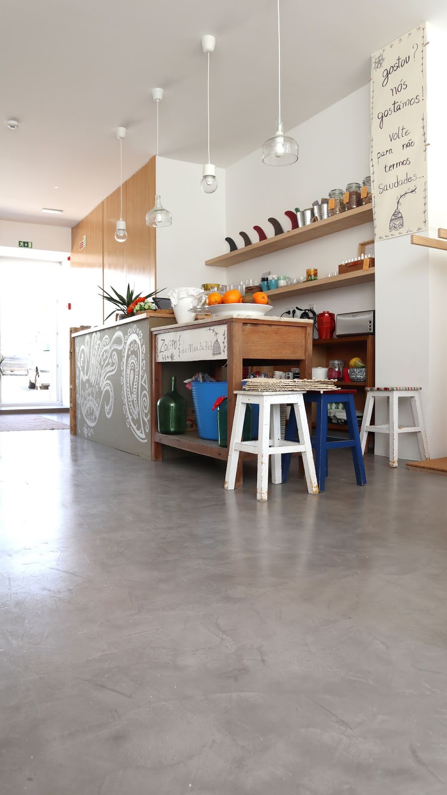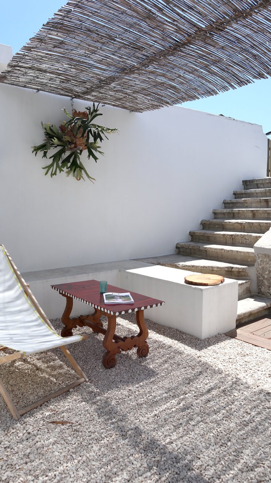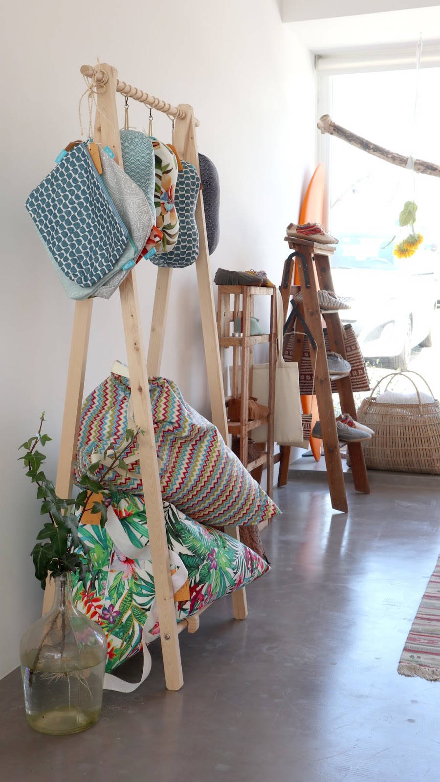 Para além de produtos desde calçado, biquinis, peças decorativas, adereços para a praia e as mega pranchas de surf, que para mim que sabe pouco do assunto são só por si uma peça de design, há um terraço traseiro onde eu gostava de viver. É aqui que eu prometi reservar um degrau para almoçar, para vir tomar um copo ao final do dia e onde sei que estão para acontecer eventos e workshops que a C. está a organizar com imensa vontade, há planos no ar e eu quero lá estar!!
