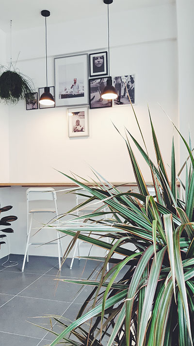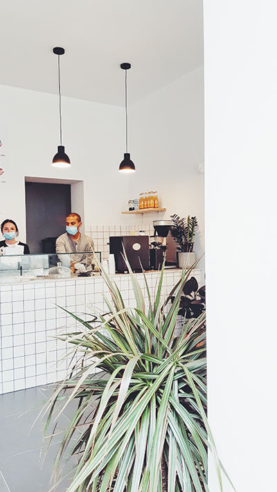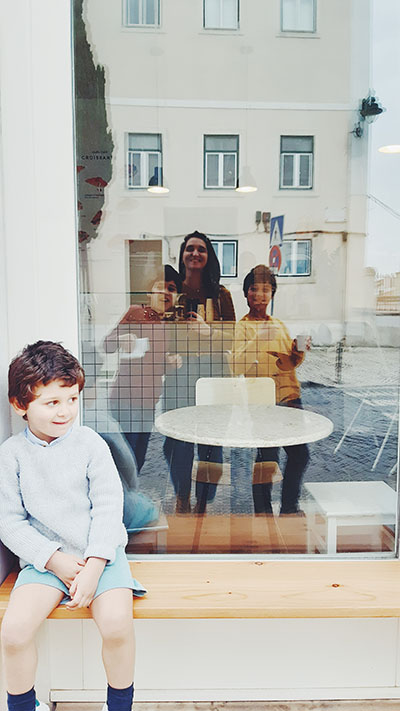 Lugar simples, pequenino, branquinho, acolhedor apesar de não podermos entrar, por agora, dois sorrisos de olhos por trás de uma máscara, um cheirinho a croissant caseiro e um espaço à nossa espera.